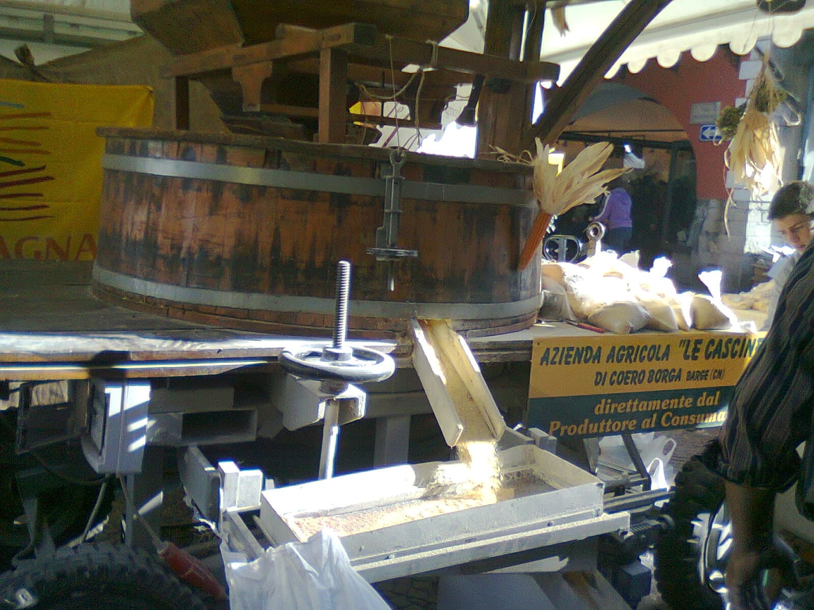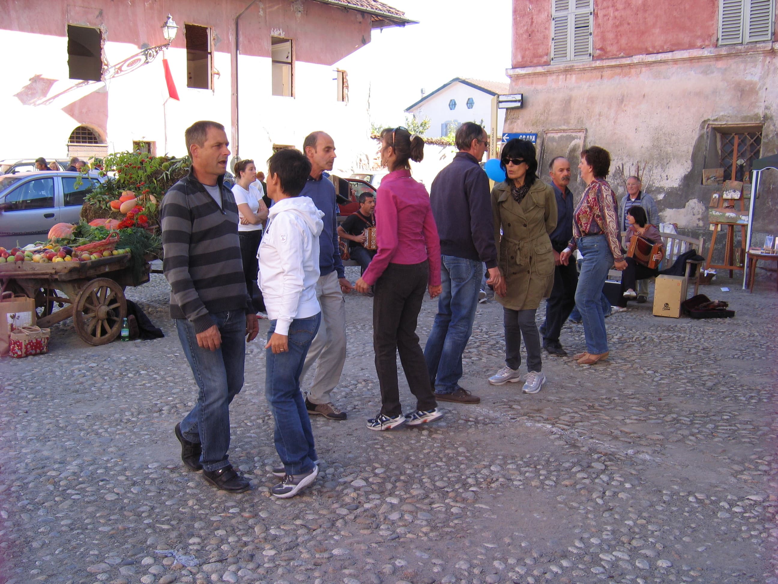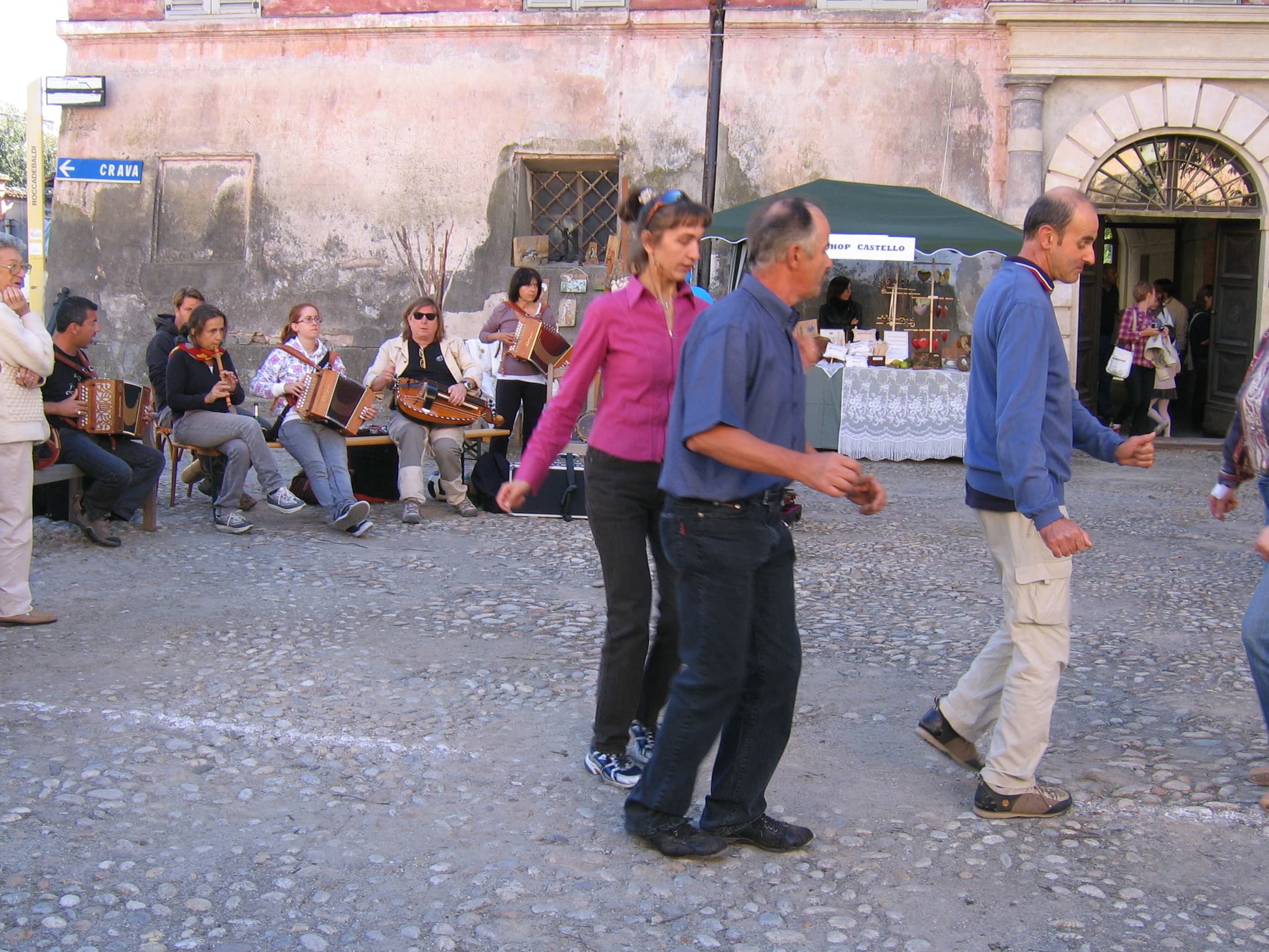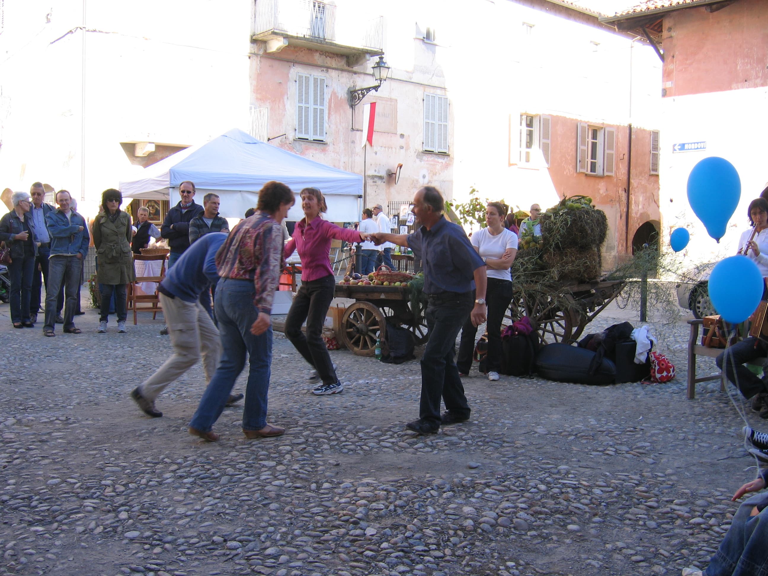 Die Menschen drängen sich durch die Strassen: Es ist ein schöner Herbsttag, Sonntag, und in der Innenstadt reiht sich ein Marktstand an den anderen. Vor allem Schuhe sind vertreten. Auf dem grössten Platz – Piazza Galimberti – stehen die weissen Zelte der Direktvermarkter aus der Region. Hier kann alles probiert werden, was hier wächst oder produziert wird: Süssigkeiten und Käse, Wein und Brot, Maismehl für Polenta, Salami, Trüffel, Honig, Obst und Pilze. Dazwischen wird getanzt. Sie tanzen gern, die Piemontesen. Zum einen ihre alten, okzitanischen Volkstänze zur Musik mit historischen Instrumenten, aber auch latein-amerikanisch oder Polka oder Walzer nach der Ansage eines DJs…. Und es tanzt jeder, spontan mischen sich die Menschen unter die Tanzenden, junge, alte – es ist sehr schön, sehr ernst, fast feierlich.