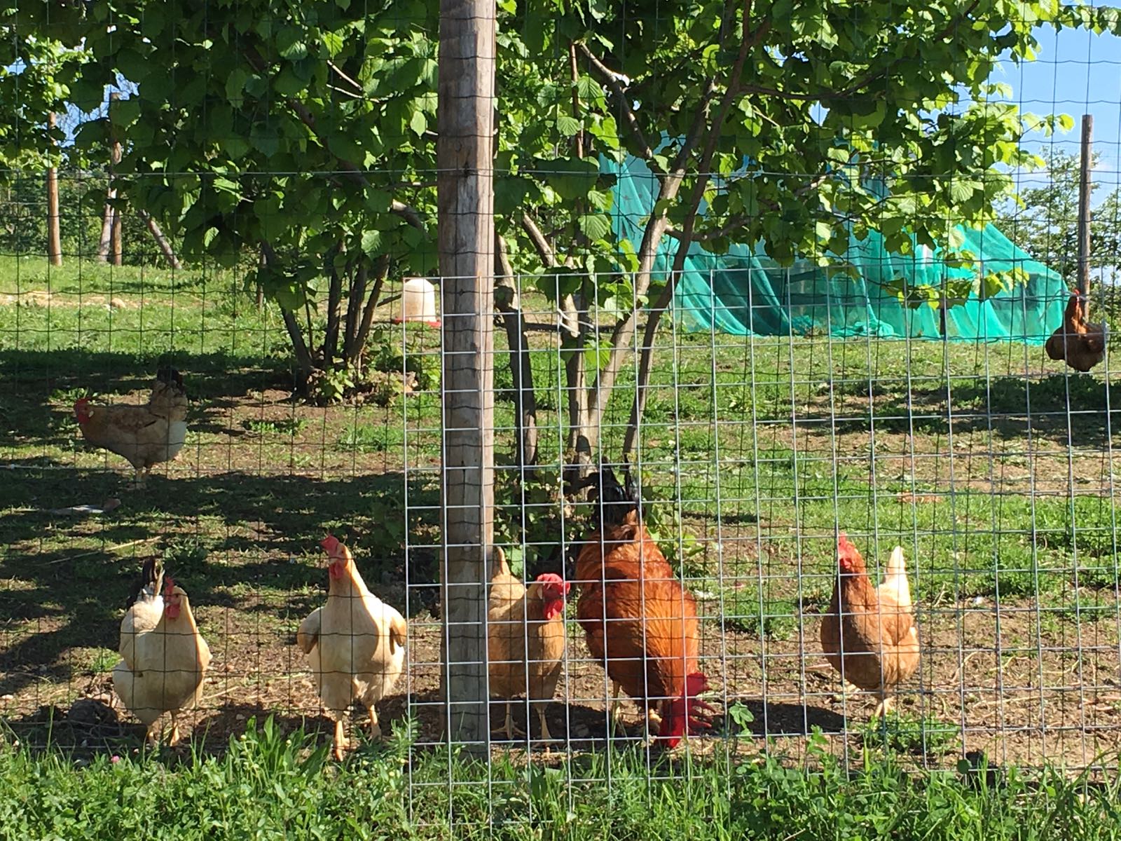 Die Cascina Cerea-Familie hat Zuwachs bekommen: Eine muntere Hühnerschar tummelt sich jetzt unter den Haselnussbüschen neben dem Gemüsegarten. Sehr zur Freude unserer Gäste, die Eier unserer glücklichen Hühner finden reißenden Absatz, kein Wunder, sie schmecken ja auch viel besser und die Spätzle sind wunderbar goldgelb. Drei braune Legehennen waren es zu Beginn, dann kamen sechs einer altbewährten einheimischen Rasse mit einem stolzen Hahn dazu, blonde Piemonteser aus Villanova d'Asti.