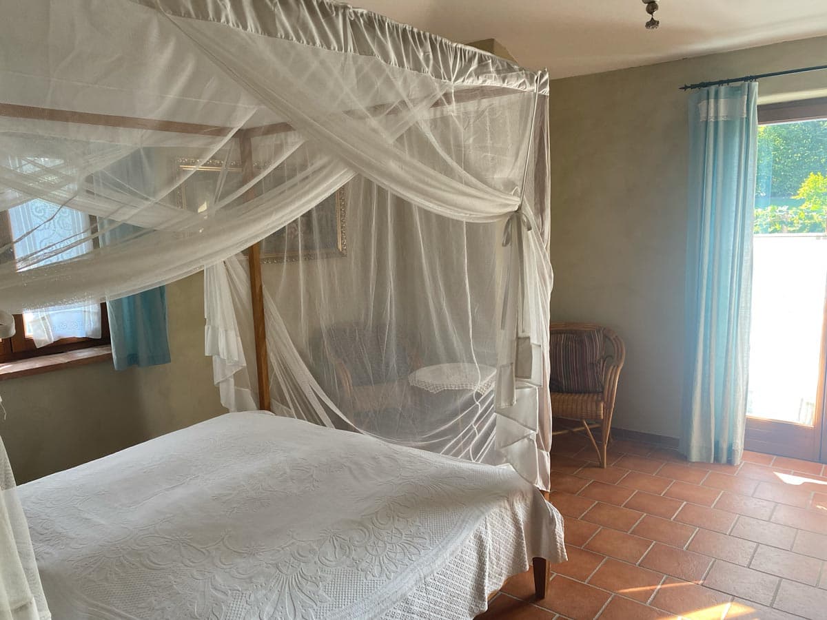 - Ein Schlafzimmer mit Doppelbett und Balkon