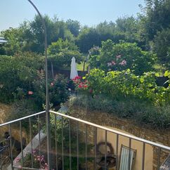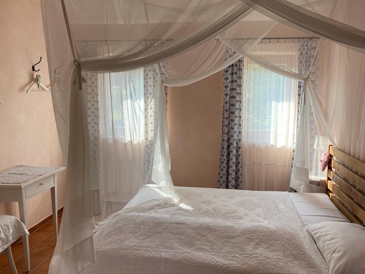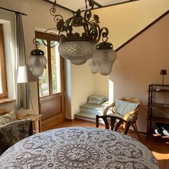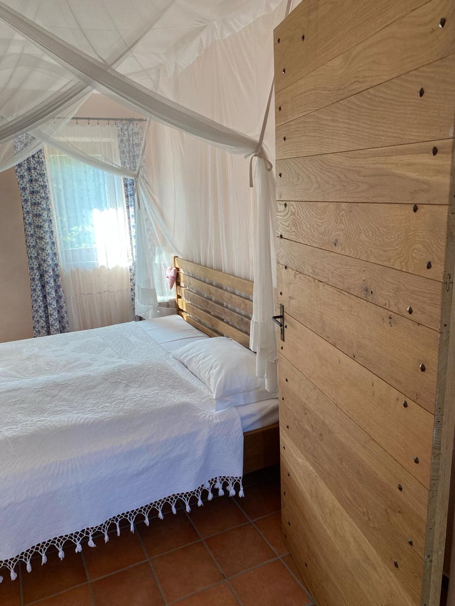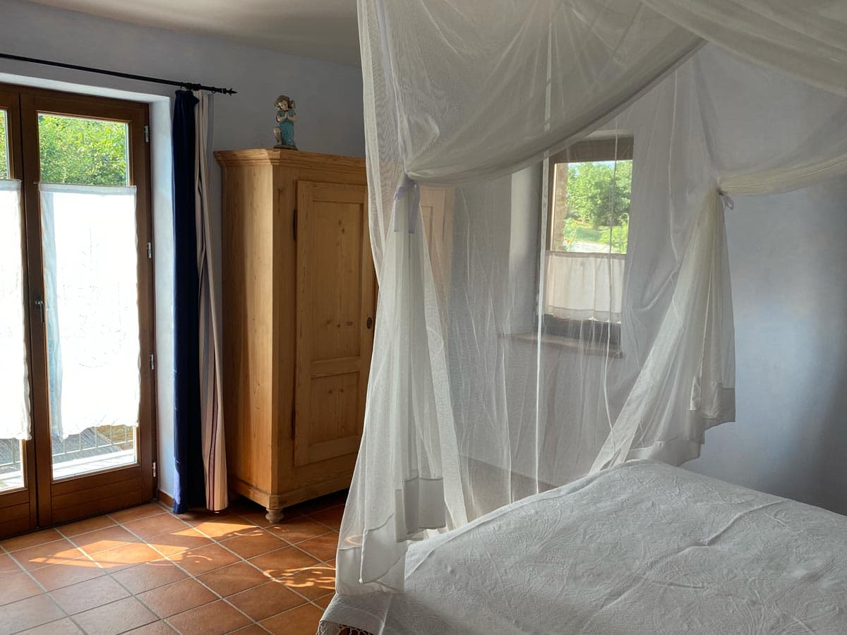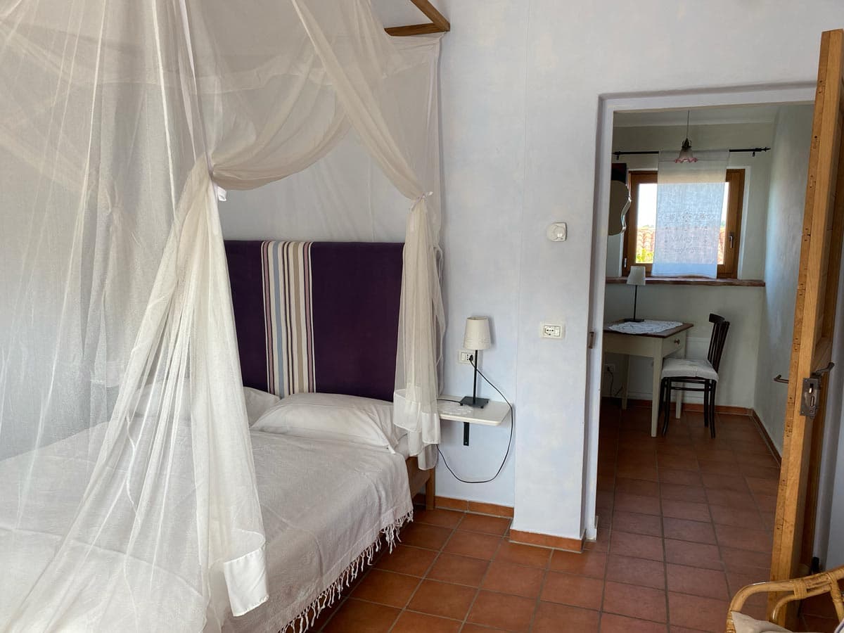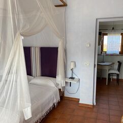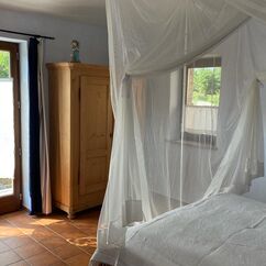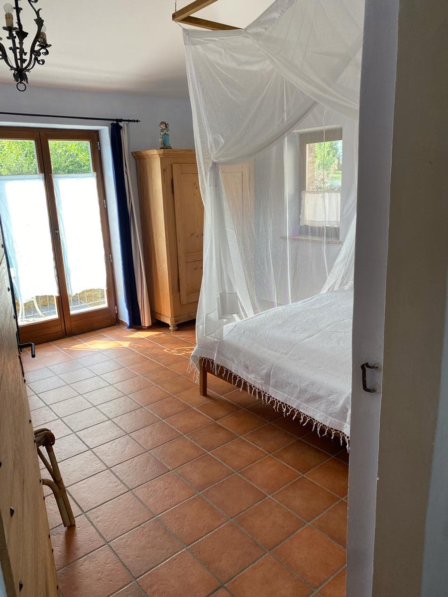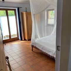 - Ein Schlafzimmer mit Doppelbett und Balkon